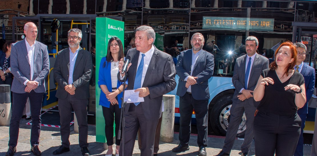 La presentación de nuestras nuevas unidades se realizó el martes 21 de octubre en la explanada de la Intendencia de Montevideo y contó con la participación de nuestro presidente, Juan Salgado; del intendente de Montevideo, Mario Bergara; y con la presencia de la ministra de Industria, Energía y Minería, Fernanda Cardona; de la secretaria general de la IM, Viviana Repetto; del director de Coordinación Institucional, Justo Onandi; y del director del Departamento de Movilidad, Germán Benítez.